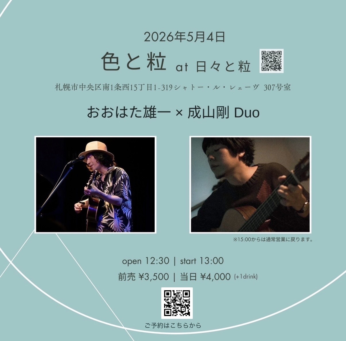 【イベント出演】札幌・日々と粒 おおはた雄一 × 成山剛
